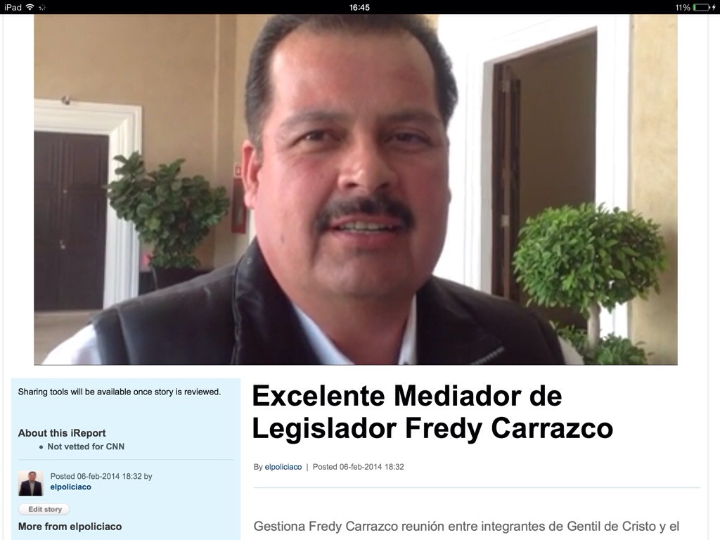 Carrazco Agramón, quien siempre ha mostrado gran apertura a las diversas ideologías y opiniones religiosas, gestionó la reunión entre los representantes de Gentil de Cristo y el gobernador, quienes solicitaron apoyo para concluir la construcción del Centro de Convenciones en el que se congregan los feligreses.