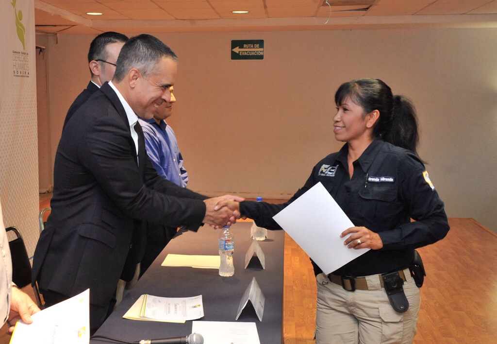Los reconocimientos fueron entregados a los agentes de la PEI por el Presidente de la Comisión Estatal de Derechos Humanos, Raúl Arturo Ramírez Ramírez; y por el Procurador General de Justicia del Estado, Carlos Alberto Navarro Sugich.
