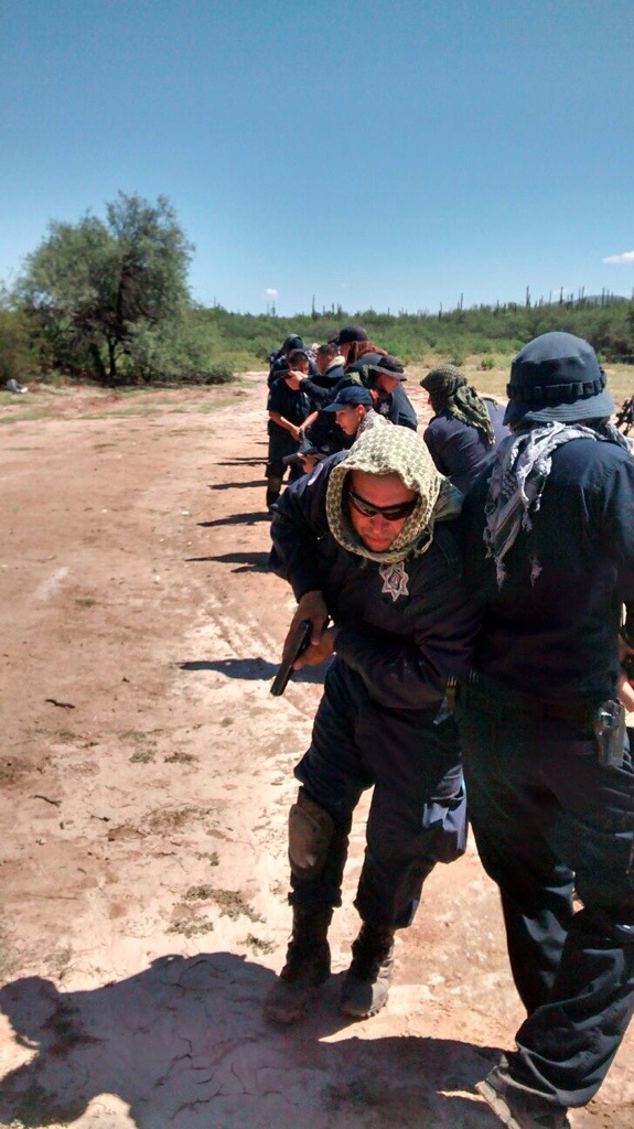 Elementos de la Policía Estatal de Seguridad Pública (PESP) pertenecientes al Mando Único Policial de la región Río Altar finalizan capacitación práctica en Tubutama, Sonora.