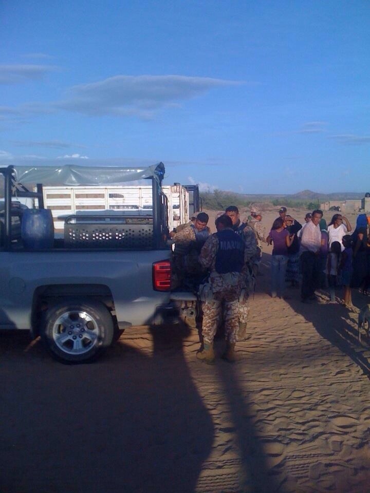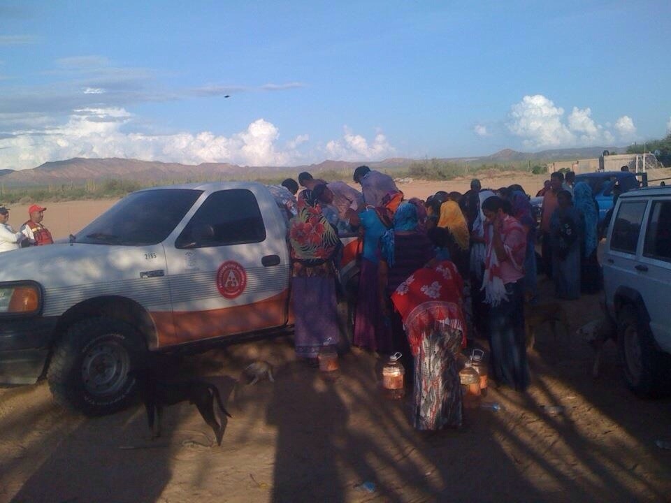 Marina,Bomberos y Protección Civil entregan agua y despensas en Axöl Ihöm o «Desemboque»de los Seris.