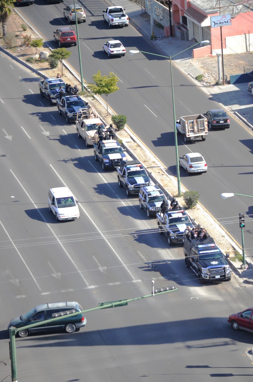 Bajo la Coordinación del Secretario de Seguridad Pública del Estado, Lic. Adolfo García Morales, Policía Estatal de Seguridad Pública, Secretaría de la Defensa Nacional, Policía Federal y Policía Municipal recorren zonas conflictivas de la ciudad en busca de prevenir e inhibir el delito