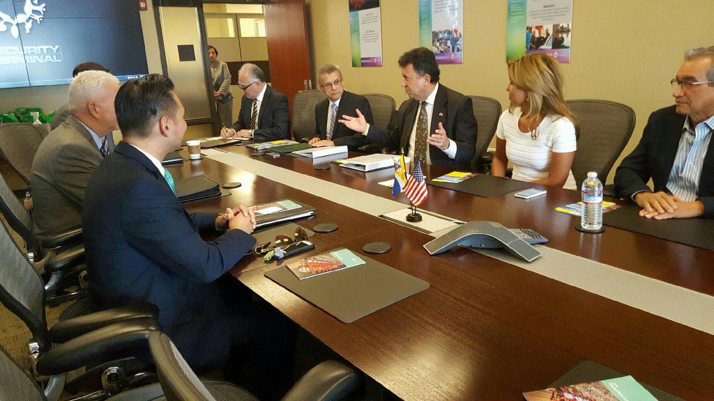 -Se reunió con autoridades de ambos puertos Los Ángeles, California, Estados Unidos, julio 27 de 2016.- Convertir a Guaymas en puerto alterno de Long Beach, California, propuso la Gobernadora de Sonora, Claudia Pavlovich Arellano. Ello durante una reunión realizada en las instalaciones de este puerto norteamericano con autoridades portuarias de Guaymas y Long Beach, California, así como diplomáticos y funcionarios federales y estatales de México. La Gobernadora Claudia Pavlovich resaltó la oportunidad que representa la capacidad operativa y de manejo de carga que tiene el recinto portuario de Guaymas, que podría complementar el flujo de mercancías que se transportan por mar desde Long Beach. Recordó que Sonora cuenta con una posición geográficamente muy competitiva por su frontera, su cada vez más creciente conectividad terrestre y aérea, y su infraestructura para transporte de mercancías hacia el Mar de Cortés, en el océano Pacífico. Ante el director del puerto de Long Beach, Noel Hacegaba, el Director de Planeación Estratégica Marítima Portuaria de la Coordinación General de Puertos y Marina Mercante, Guillermo Deyster Mateos, el director de la Administración Portuaria Integral de Guaymas, Edmundo Chávez Méndez, y el Cónsul de México en Los Ángeles, Carlos García de Alba, la Gobernadora Pavlovich destacó las ventajas de esta posible alianza y lo que significa en la promoción económica de ambas entidades. Dijo que en su administración se busca dar más valor a la capacidad instalada y demostrar que los sonorenses pueden competir con los mejores para atraer inversiones y más dinamismo económico a la entidad. Entre los acuerdos se estableció generar una agenda que lleve a cristalizar esta alianza, para lo cual se realizarán reuniones con empresas que requieren transporte de mercancías por mar y pudieran hacerlo a través del puerto de Guaymas, así como una visita a Sonora por parte de los directivos del Puerto de Long Beach, California. Acompañaron a la Gobernadora Pavlovich, el Secretario de Economía, Jorge Vidal Ahumada, y el director de Impulsor, Octavio Ezquerra.