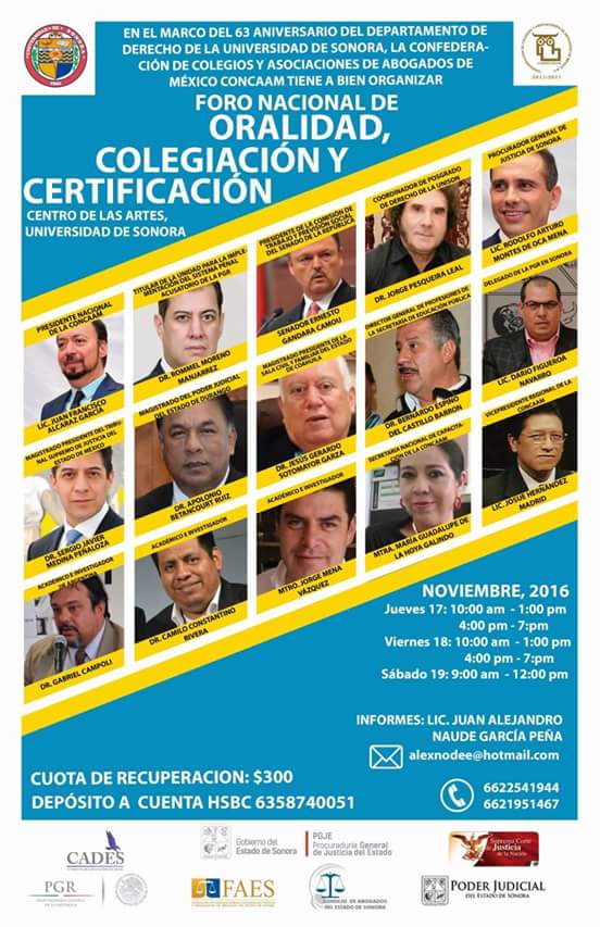 Informes y Reservaciones a los teléfonos 016622891950 con la Referencia FORO DE ABOGADOS CONCAAM.
