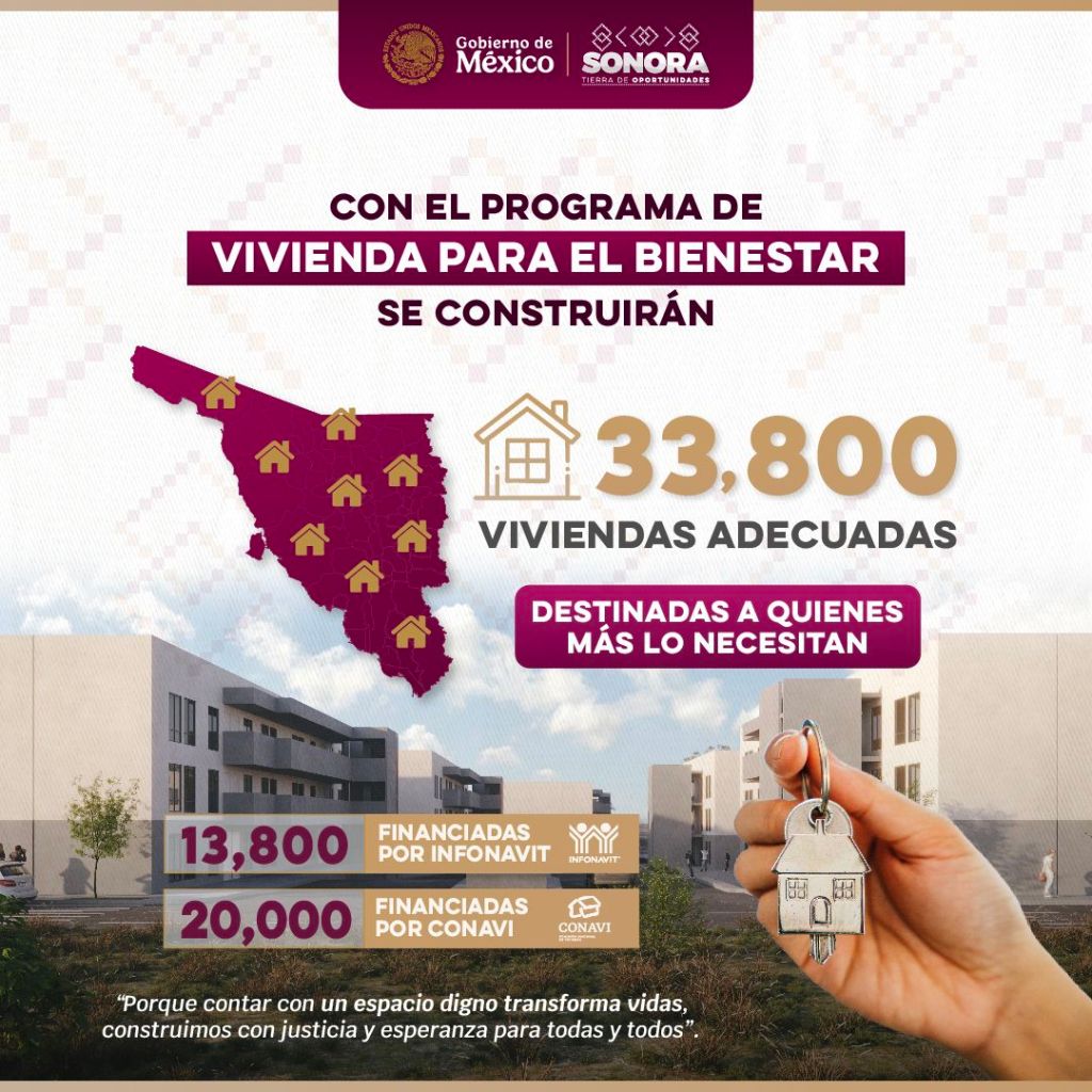 Serán 33,800 viviendas adecuadas en Sonora de las cualed 13,800 financiadas por INFONAVIT y 20,000 por la Comisión Nacional de Vivienda.