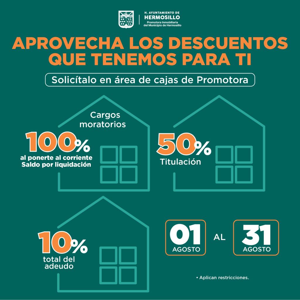 Solicitalo en el áre cajas de Promotora del 100% cargos moratorios al ponerte al corriente saldo por liquidación.