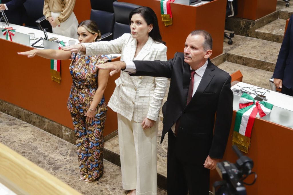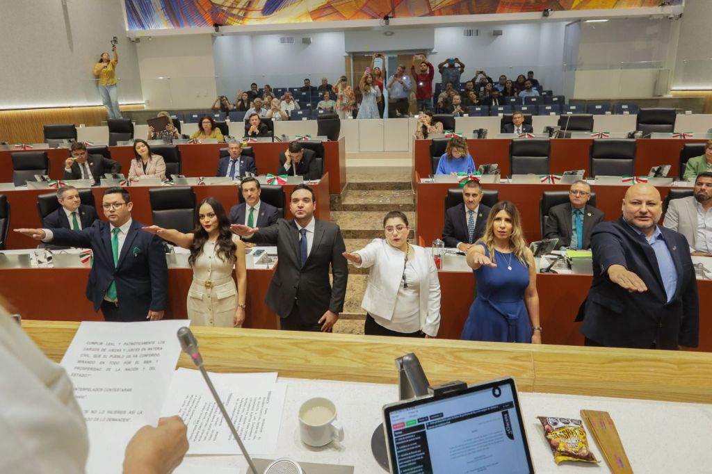 Posteriormente, se tomó la protesta de ley a las ciudadanas Marina Guadalupe Marín Gómez, Lydia Gabriela Zepeda Mazón y Dinorah Joselyn Vega Orozco, así como al ciudadano Darbé López Mendívil, quienes ocuparán el cargo de magistradas y magistrado del Tribunal de Disciplina Judicial.