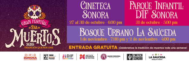Gobierno de Sonora, a través de la Secretaría de Educación y Cultura (SEC), el Sistema para el Desarrollo Integral de la Familia en el Estado de Sonora (DIF), el Instituto Sonorense de Cultura (ISC), Radio Sonora y Bosque Urbano La Sauceda invita a la comunidad en general a participar en el Gran Festival de Día de Muertos “Tradición que nos une”.