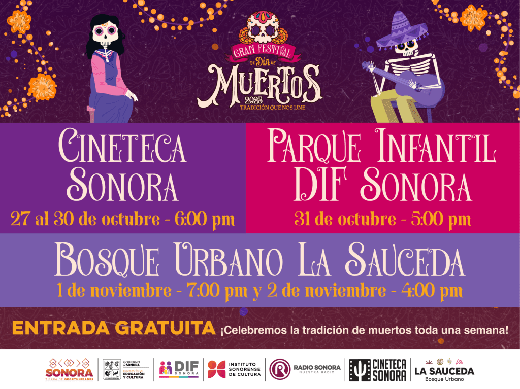 Organizan el Gobierno del Estado por conducto de la Secretaria de Educación y Cultura, El Instituto Sonorense de Cultura,DIF SONORA y por primera vez La Sauceda,Radio Sonora y CINETECA SONORA.