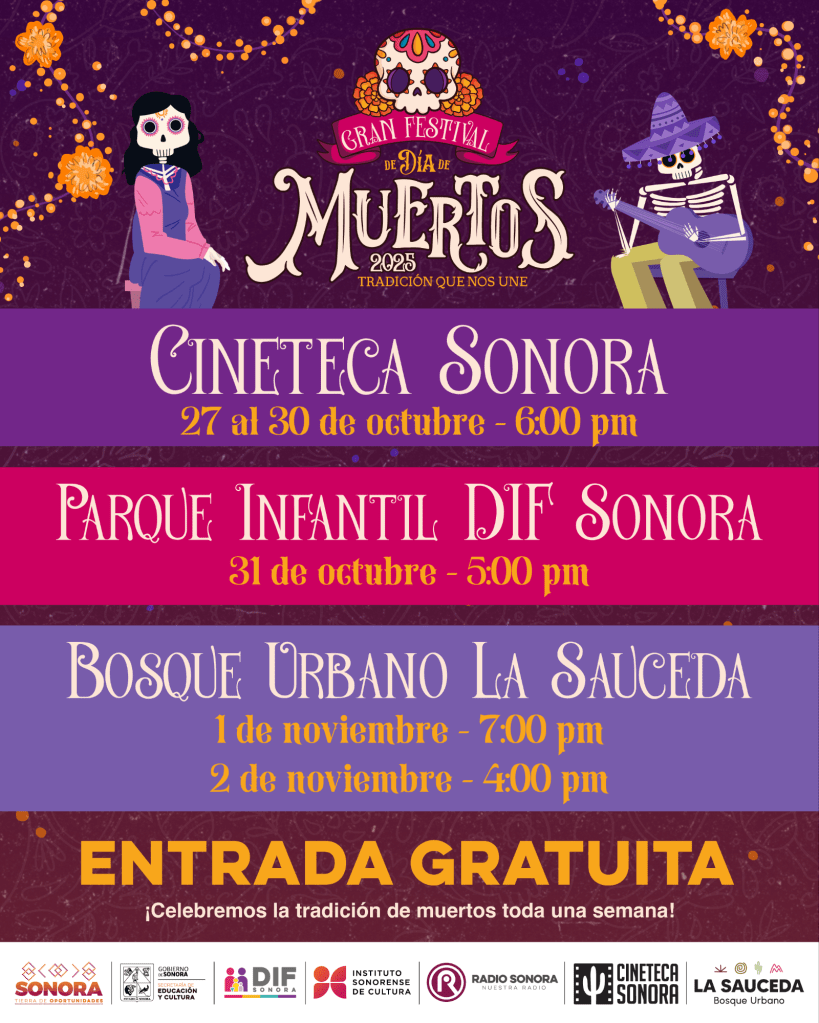 • *Del 7 al 31 de octubre*: Ciclo de Cine de Terror en la Cineteca Sonora con funciones gratuitas a las 18 h y 20 h.