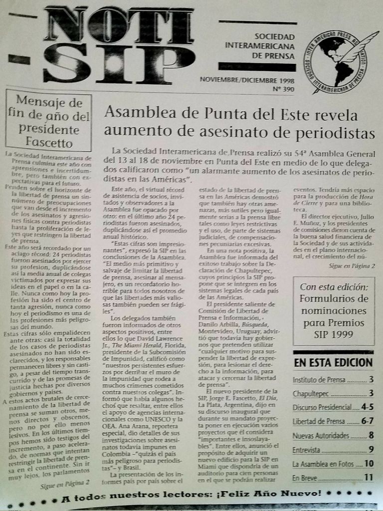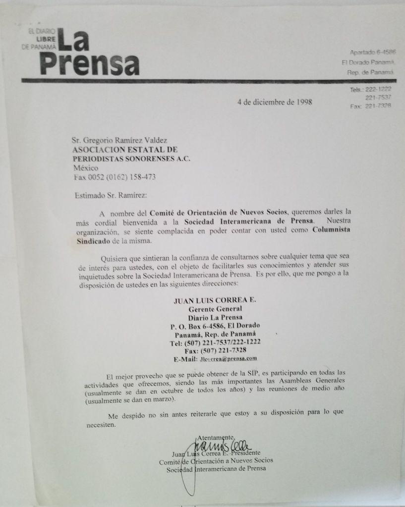Quisiera que sintieran la confianza de consultarnos sobre cualquier tema que sea de interés para ustedes, con el objeto de facilitarles sus conocimientos y atender sus inquietudes sobre la Sociedad Interamericana de Prensa.Es por ello, que me pongo a la disposición de ustedes en las siguientes direcciones: