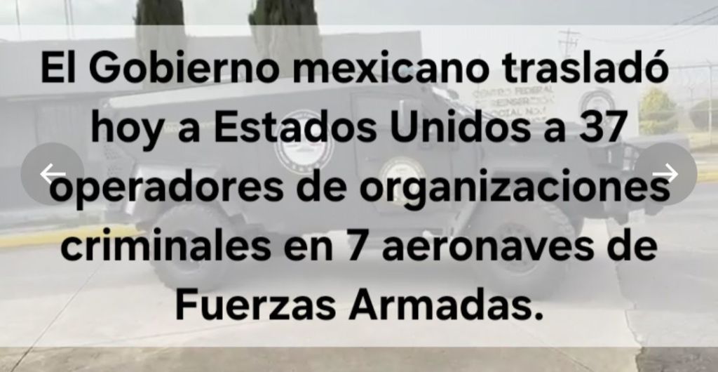 El Gabinete de Seguridad MX a solicitud de The Justice Dept EUA, bajo los mecanismos de cooperación bilateral, con pleno respeto a la soberanía nacional, trasladó hoy a Estados Unidos a 37 operadores de organizaciones criminales en 7 aeronaves de Fuerzas Armadas, representaban amenaza para la seguridad de México, informa el Omar Garcia.